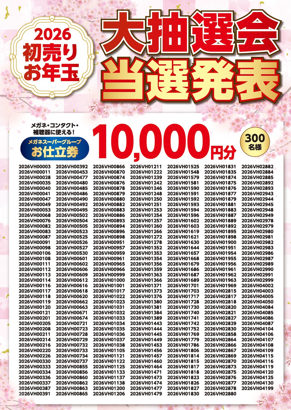 2026年初売りお年玉大抽選会の当選番号を発表しました。
